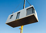 Hier können Sie "LIVE" beim Stelltermin eines ICON 4.01 CITY dabei sein, welches am 27.5.2019 gestellt wurde. Sehen Sie, wie die 28to schweren Module über die Dächer der Nachbarn schweben.