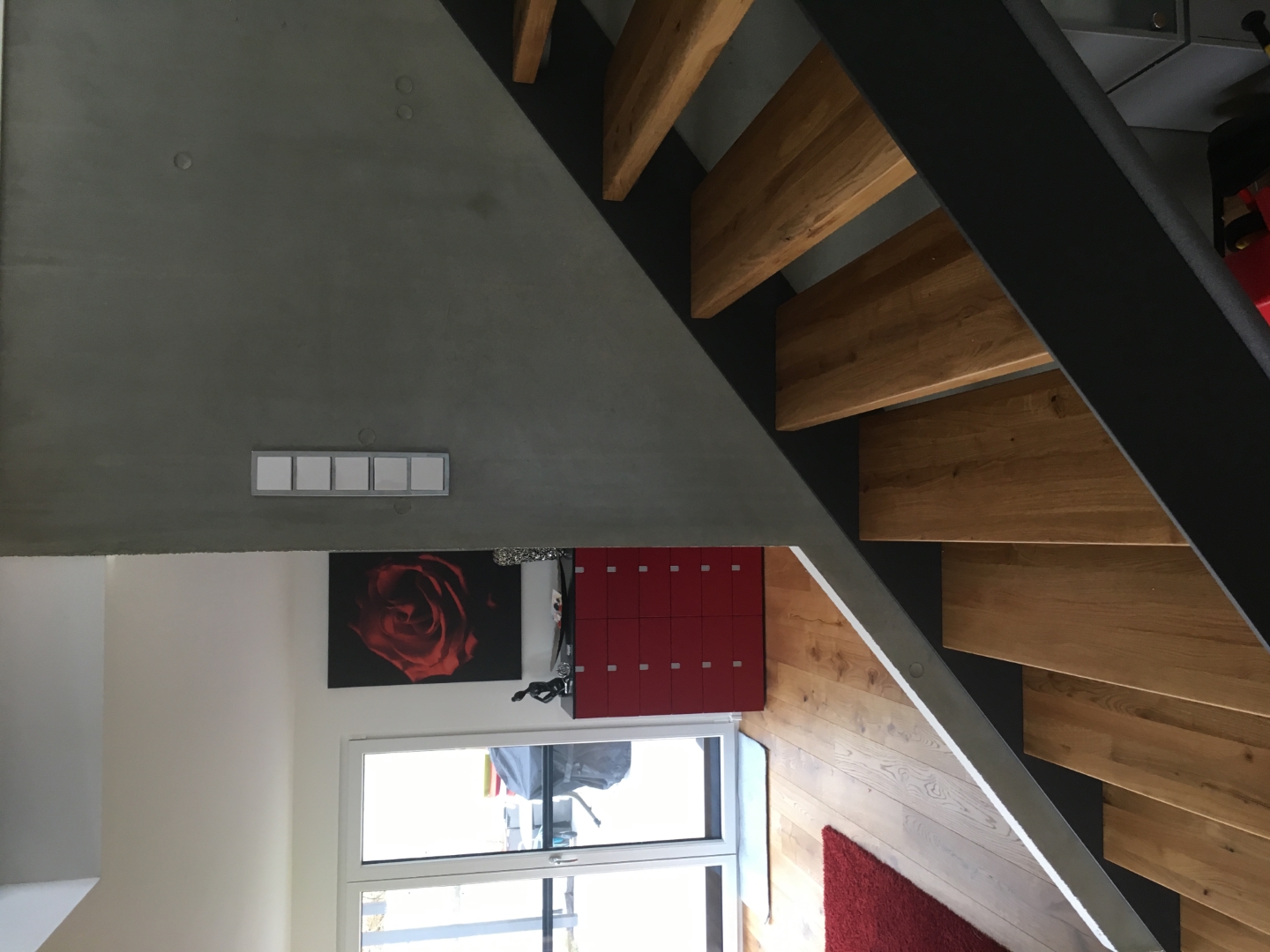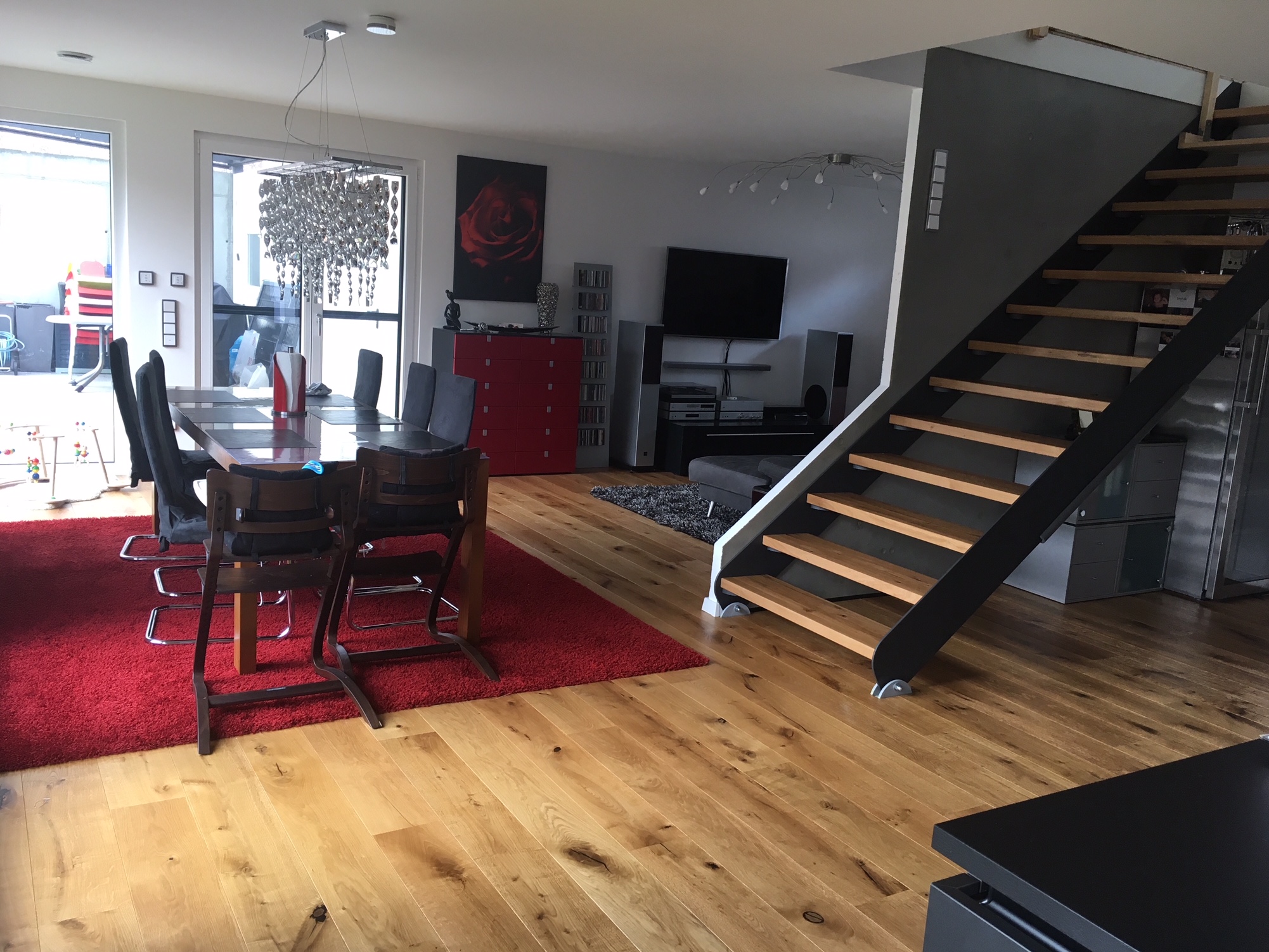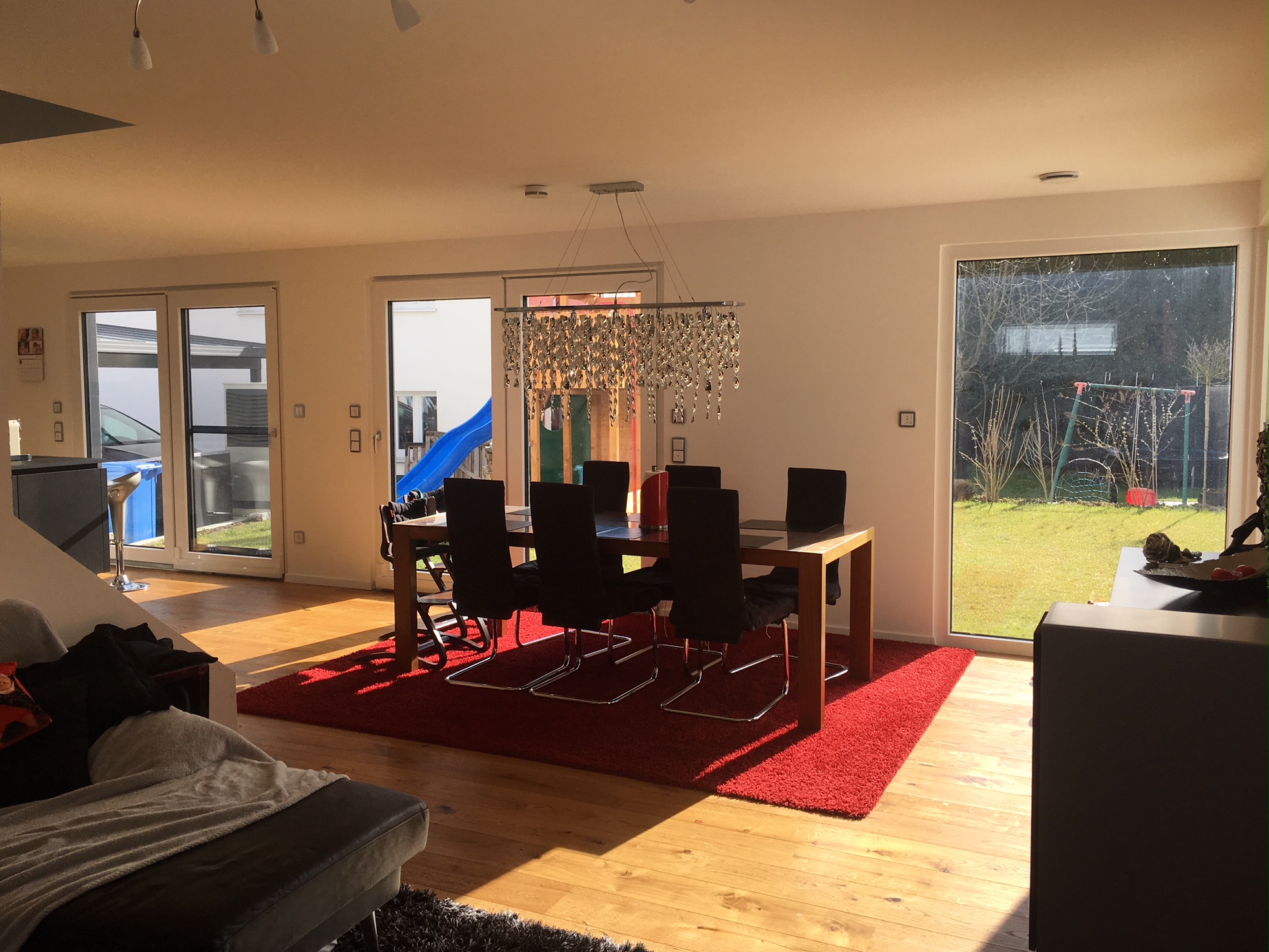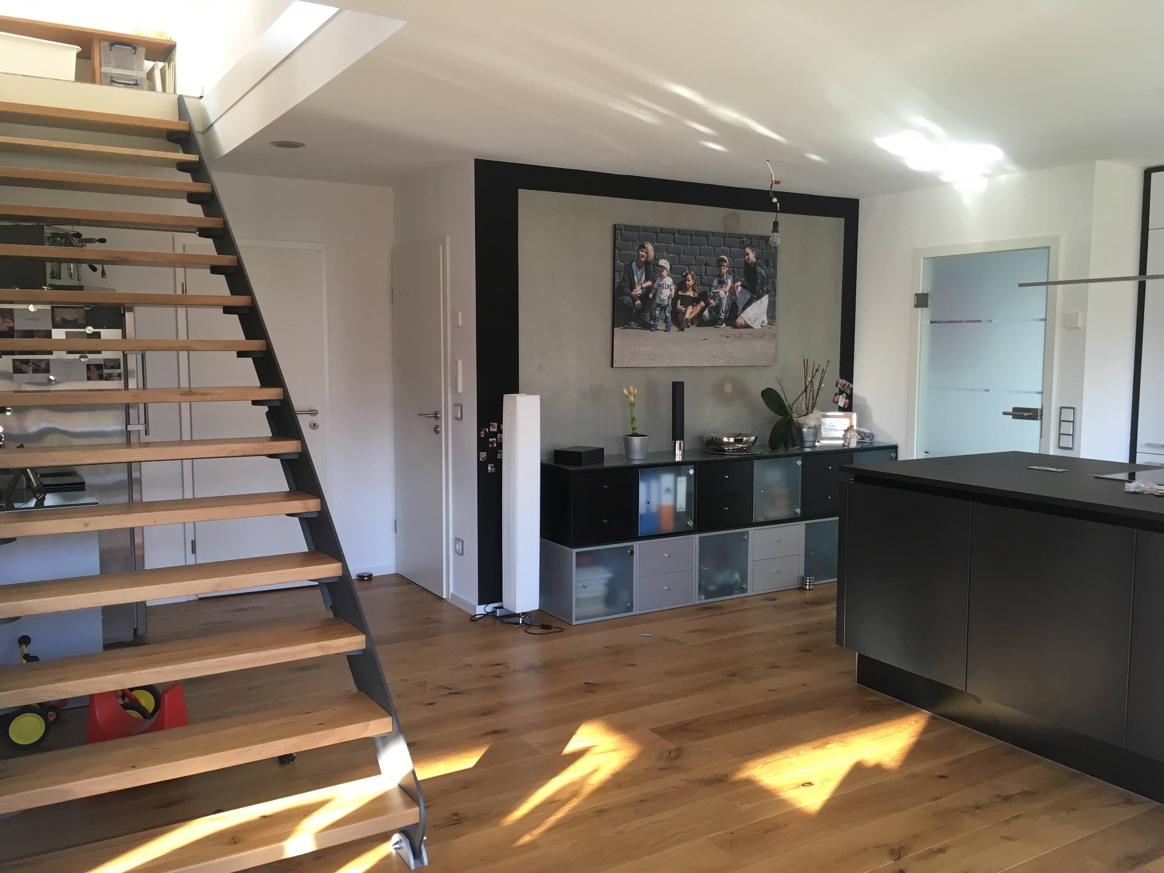 anderer Wohn-Ess-Küchen Aufteilung,... .  Sehr zufrieden sind wir auch mit unseren 2 wunderschönen vielfach abgeraten Wänden, wo man den Beton sehen kann.